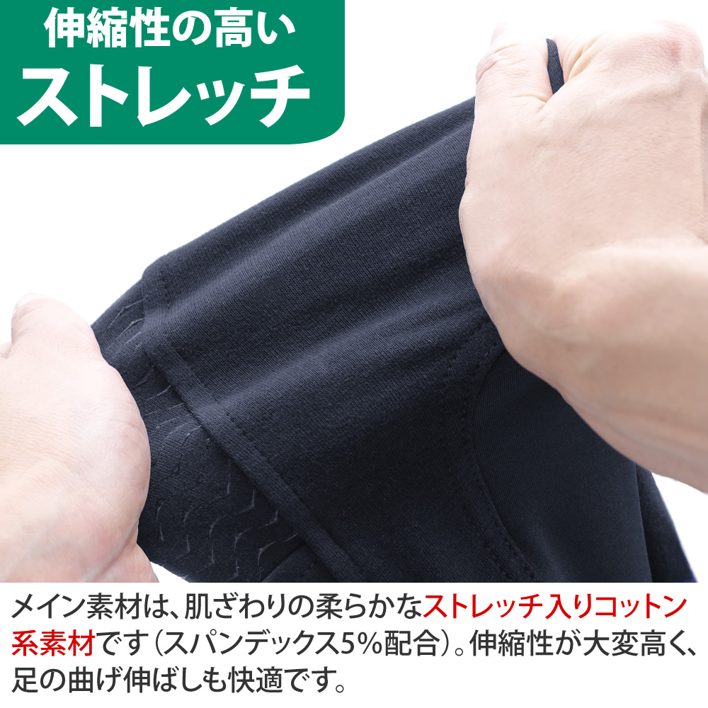 メイン素材はストレッチ性の高い柔らかなコットン系素材。シリコン部位も含めて大変伸びが良く、快適な履き心地です。