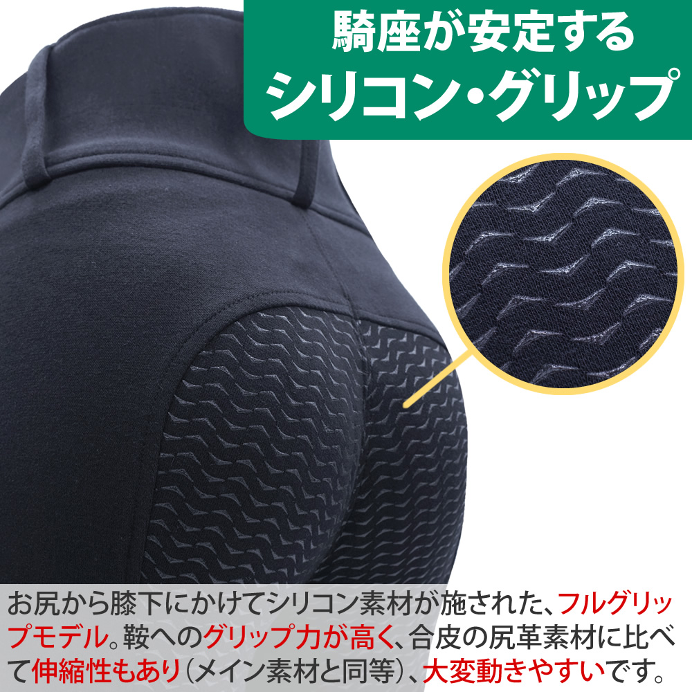 お尻から足元にかけて施されたグリップ力の強いシリコン素材が、騎乗時の安定感を大幅にアップさせてくれます。